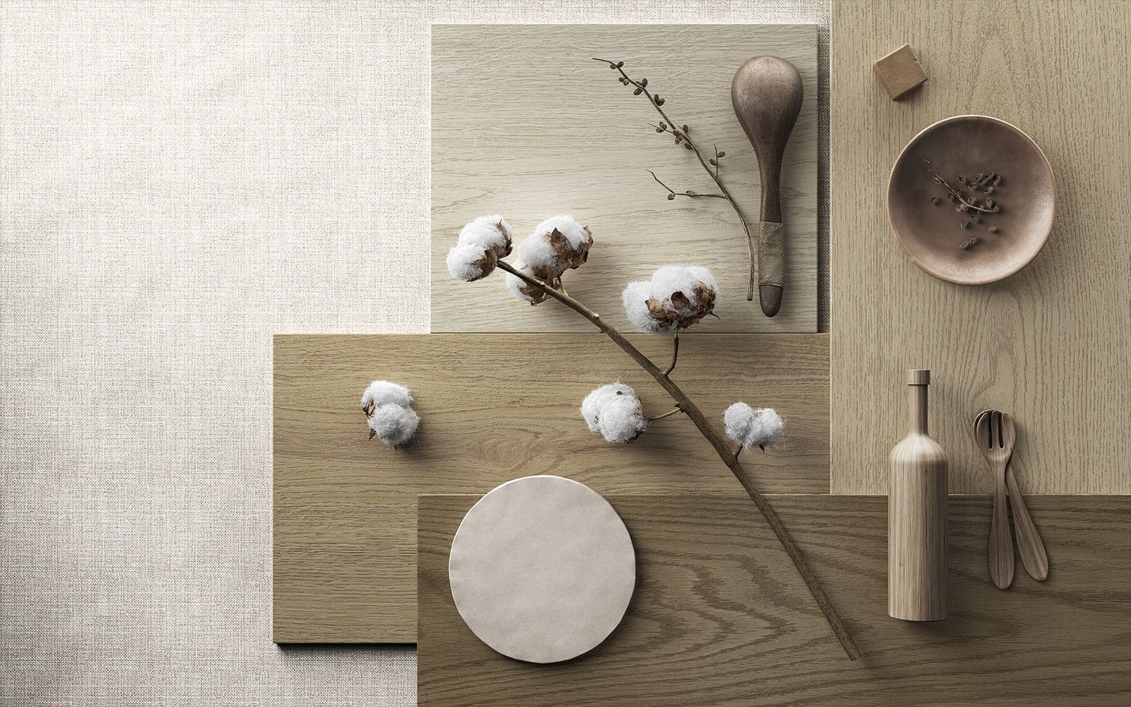 옹이나 거친 결을 배제한 가장 순수하고 깨끗한 원목의 아름다움을 담아내며, 최첨단 3D 기술로 실제 원목을 만졌을 때의 감각과 질감을 그대로 구현했습니다.