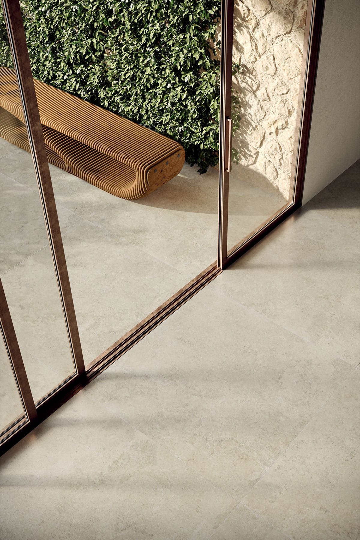 살렌토(Salento) 지역의 전형적인 천연석에서 영감을 받은 이 컬렉션은, 표면의 따스함과 현대 건축이 어우러지는 새로운 해석을 제시하며 실내외의 경계가 없는 유연하고 세련된 공간을 조성합니다.